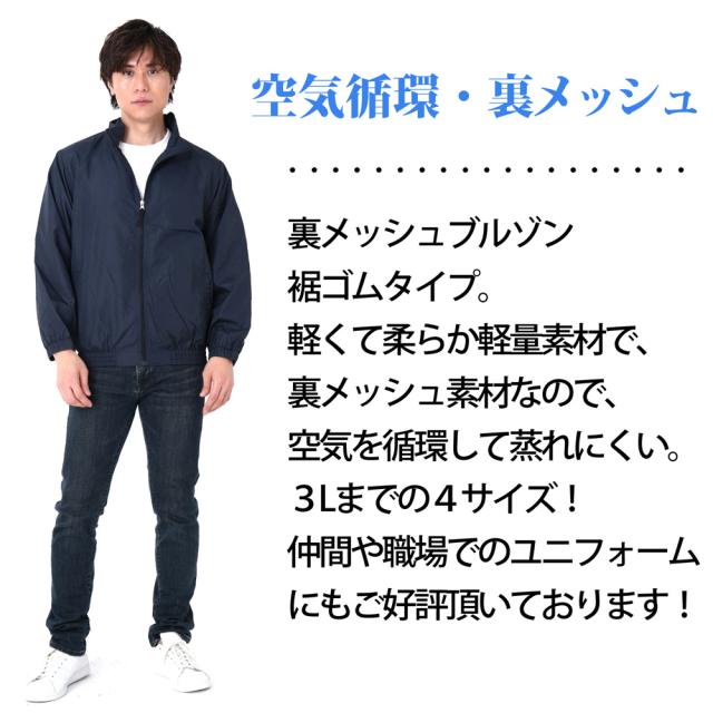 ウィンドブレーカー ブルゾン 裏メッシュ ファッション アウター ユニフォーム イベント 軽量 薄手 持ち歩き ポケット付き 裏メッシュブルゾン