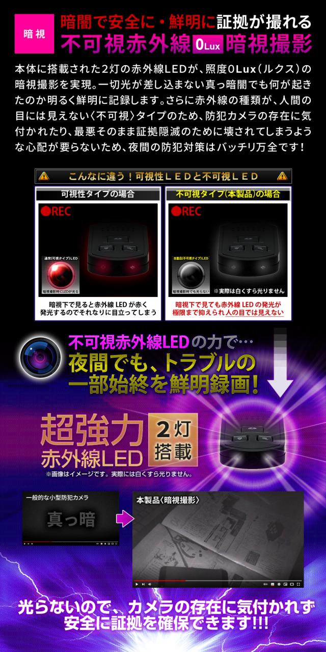 ・不可視 赤外線LED暗視撮影機能