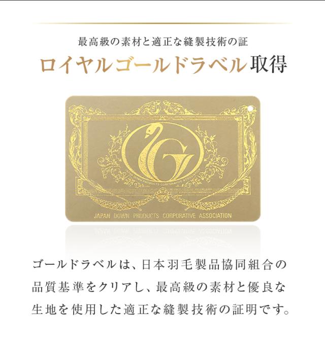 日本羽毛製品協同組合より「ロイヤルゴールドラベル」の認定を得た高品質