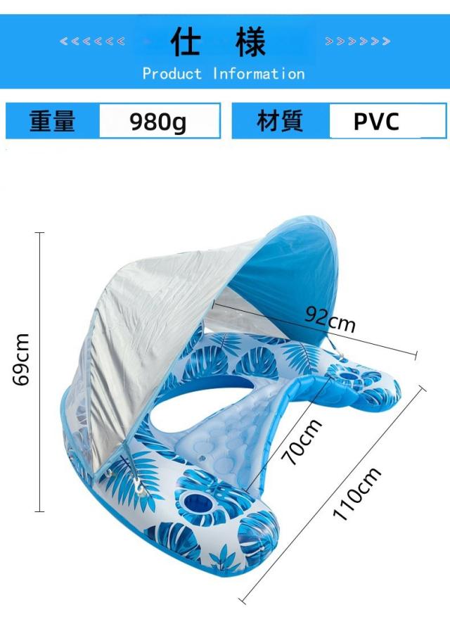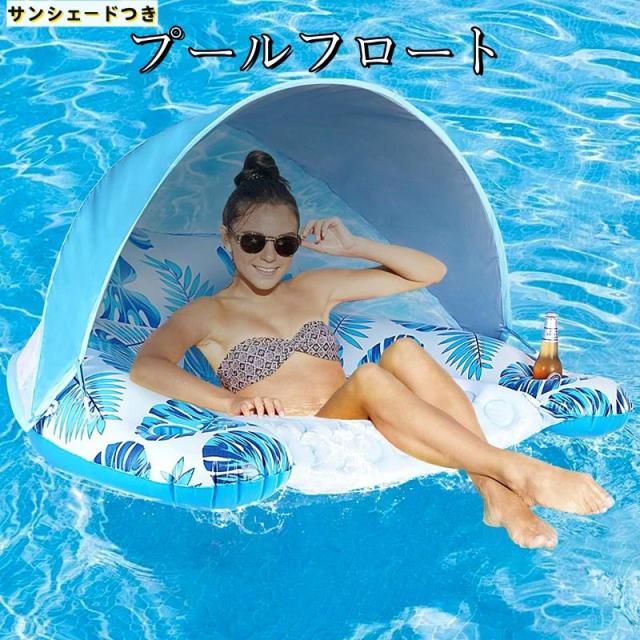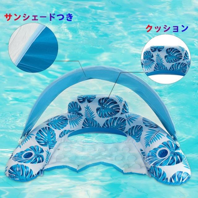 フロート インフレータブルフロート 大人用 エアークッションテント プール用ウォーターハンモック サンシェードつき 水上チェア 背もたれ付き
