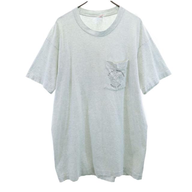 フルーツオブザルーム 90s USA製 オールド ポケT 半袖 Tシャツ XL グレー系 FRUIT OF THE LOOM ポケT メンズ