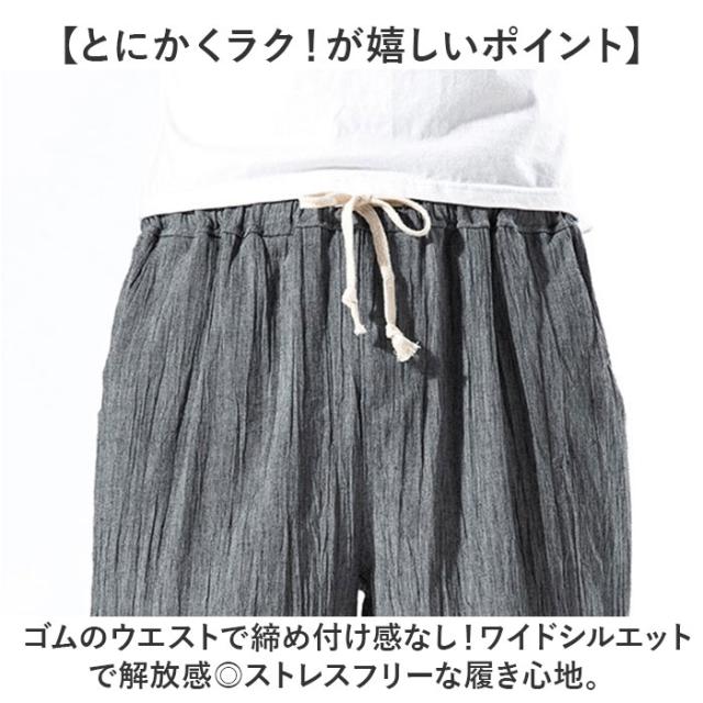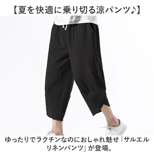 サルエルパンツ メンズ リネン 通販 リネンパンツ 麻パンツ ワイドパンツ パンツ ズボン 綿 薄い 軽い 軽量 履き心地が良い ストレスフリー シンプル ドライ感 快適 ポケット 丈夫