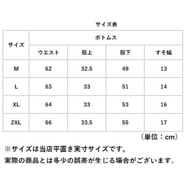 | サイズ | [メンズ] ・Mサイズ ・Lサイズ ・XLサイズ ・2XLサイズ ※サイズについて詳細は、商品画像の中にあるサイズ表をご覧くださいませ。 |