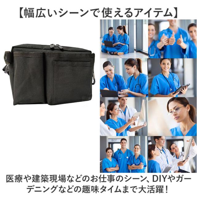 | 商品説明 | 【お仕事用ポーチはこれで決まり☆!】 ・小物を整理整頓できる使いやすいポケットがたくさん!ウェストポーチ 作業用が登場。 【あったらいいなが叶うポケット】 ・フロントには、アルコール消毒液やペン、ミニメモなど、サッと取り出したいモノを収納可能◎ 【カラビナやDカンを搭載】 ・鍵や懐中時計などをぶら下げられる仕様。ポケット以外にも収納ができる優れモノ! 【ユニセックス、エイジレスOK】 ・長さ調節可能なので、男女関係なく身体にフィットできる!両手が自由に使えるのも魅力◎ 【たくさん入るマチつき仕様】 ・見た目以上にしっかり入る収納力。約4.5cmのマチつきで、必要な物をばっちり持ち歩き! 【幅広いシーンで使えるアイテム】 ・医療や建築現場などのお仕事のシーン、DIYやガーデニングなどの趣味タイムまで大活躍! 【ポケット仕様】 ・フロント部分:オープンポケット×3、ペンホルダー×2 ・背面:面ファスナーポケット×1 |