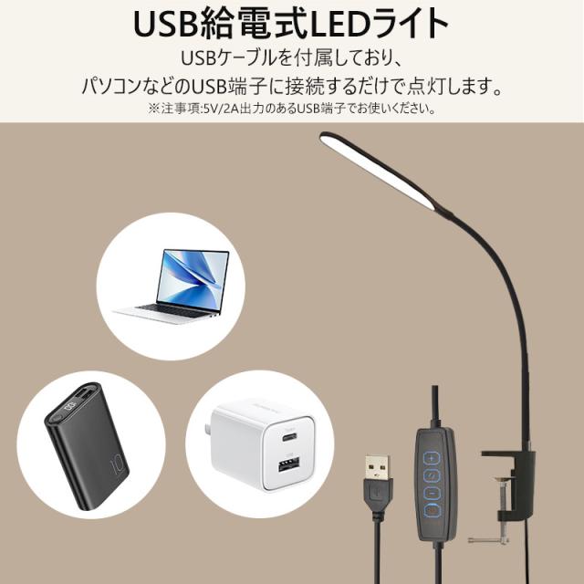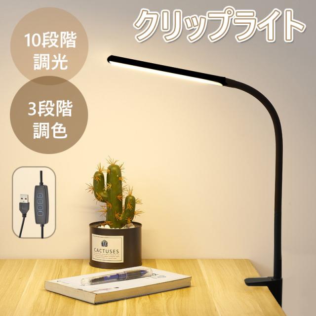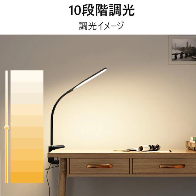 デスクライト 目に優しい クランプ式 卓上ライト電気スタンド クランプライト デスクライト 挟む おしゃれ 10段階明るさ 明るい 勉強机 学習机 ディスクライトUSB給電式 角度調整可能 led
