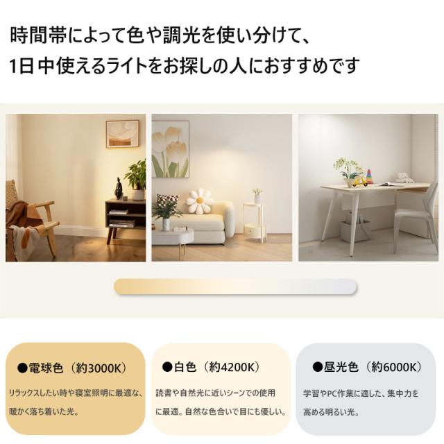 ●白色(約4200K): 読書や自然光に近いシーンでの使用に最適。自然な色合いで目にも優しい。