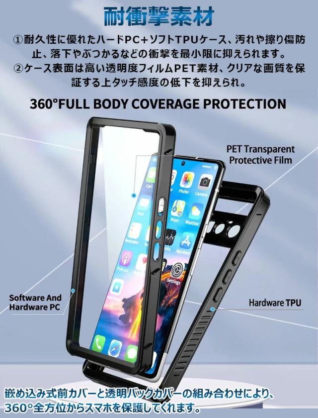 完全防水 グーグルピクセル8a ケース スマホ防水ケース googlepixel8a ケース googlepixel8 クリアケース pixel8pro ケース スマホカバー グーグルピクセル7a 防水カバー googlepixel8pro ガラスフィルム 通勤 旅行 水中保護カバー ワイヤレス充電対応