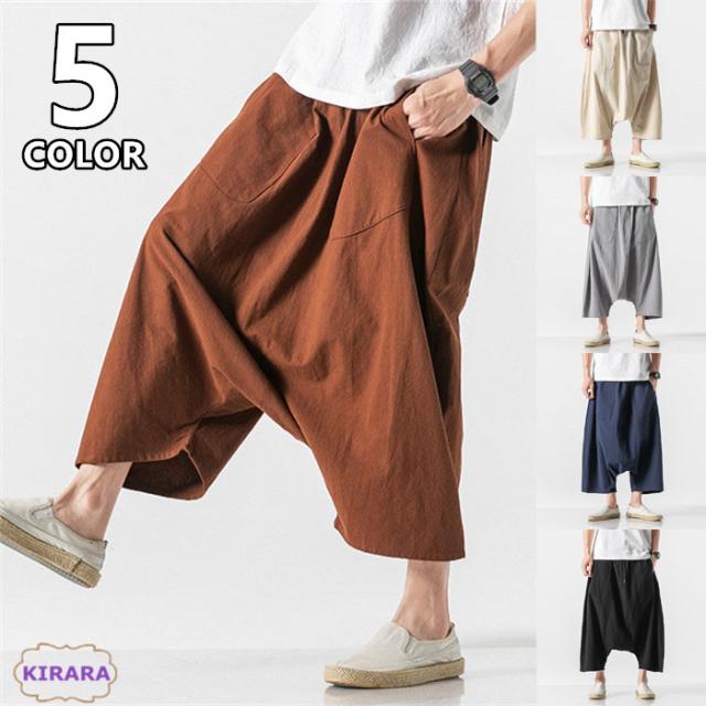 サルエルパンツ メンズ ワイドパンツ ゆったり 薄手 通気 綿麻 夏物 速乾 涼しい 8分丈 ハロンパンツ リネン ショートパンツ おしゃれ ガウチョパンツ チノパン ハーレムパンツ 大きいサイズ 夏新作