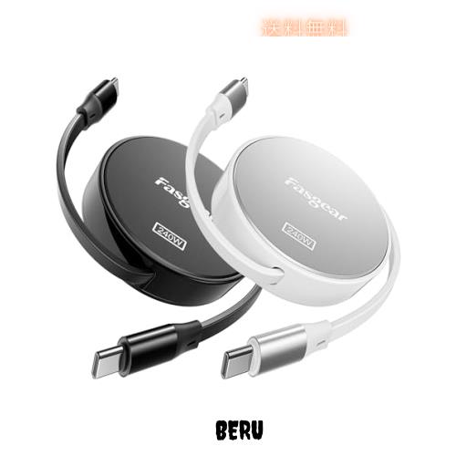 ◆商品名:Fasgear 240W USB C - USB Cケーブル 1m 100W USB C充電器用 巻き取り式 5A 急速充電タイプCコード [4伸縮] i-Phone 15、PS5コントローラ