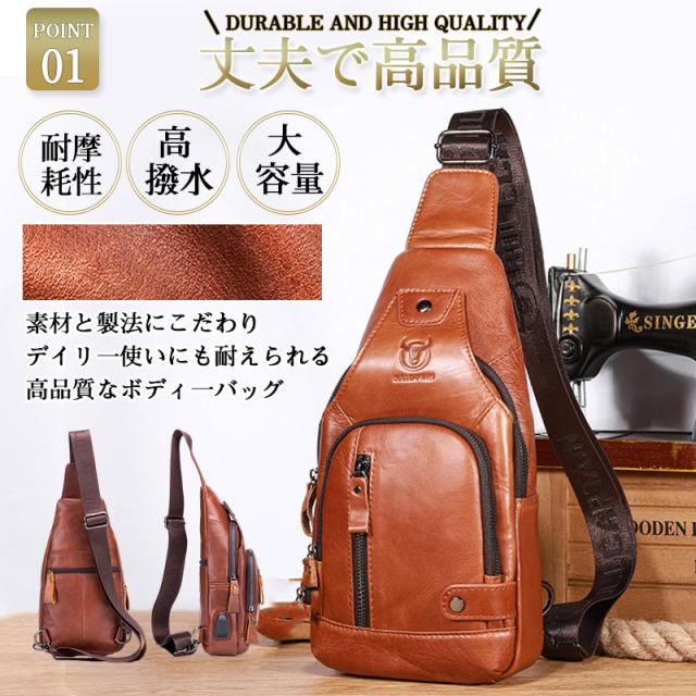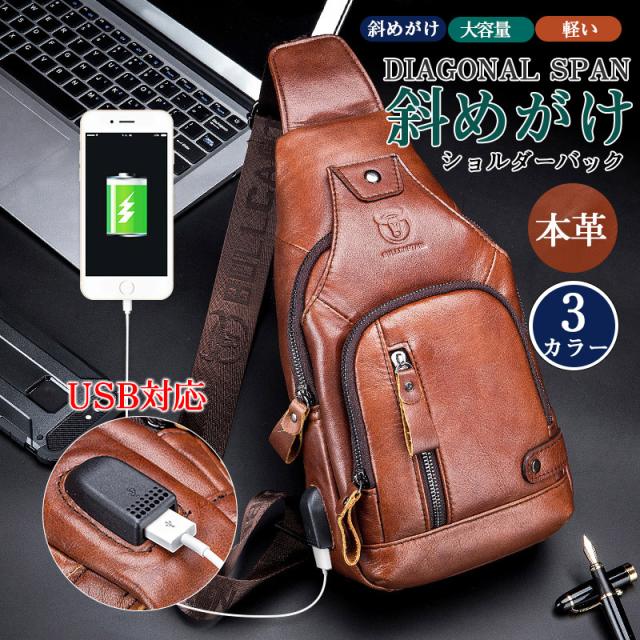本革 ショルダー ボディ バッグ バッグ ショルダー メンズ 牛革 レザー バック ワンショルダー 斜めがけ 肩掛け USB対応 父の日 ホワイトデー