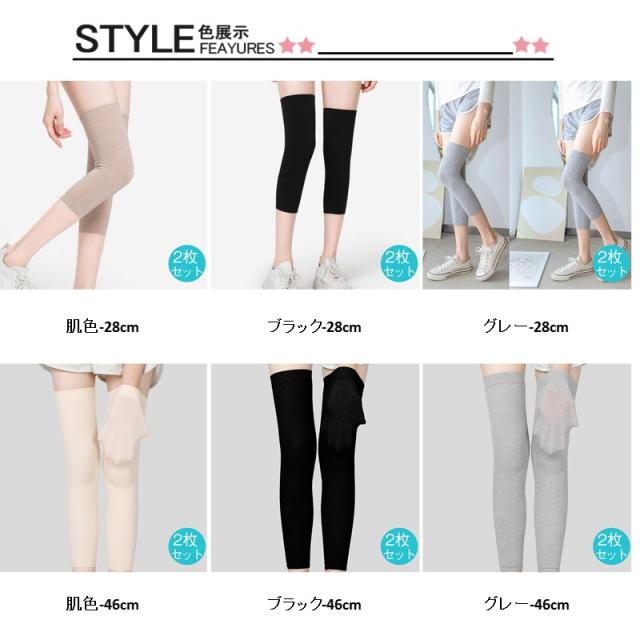 - 冬用は厚手ロングレッグウォーマはいてたけど、春夏用は着圧ロングレッグウォーマをはいてたけど、膝が悪いから、締めつけが痛くて、締めつけない、春夏用薄手伸縮性膝サポータを探していて、こちらが安く、締めつけない薄手伸縮性膝サポータだたので、替え用と2つ頼みました。長めを選択したので、冷房時期にも使える思うから、長さも、生地も、伸縮性も良かったです。春夏に使用したい思います。ありがとうございました。