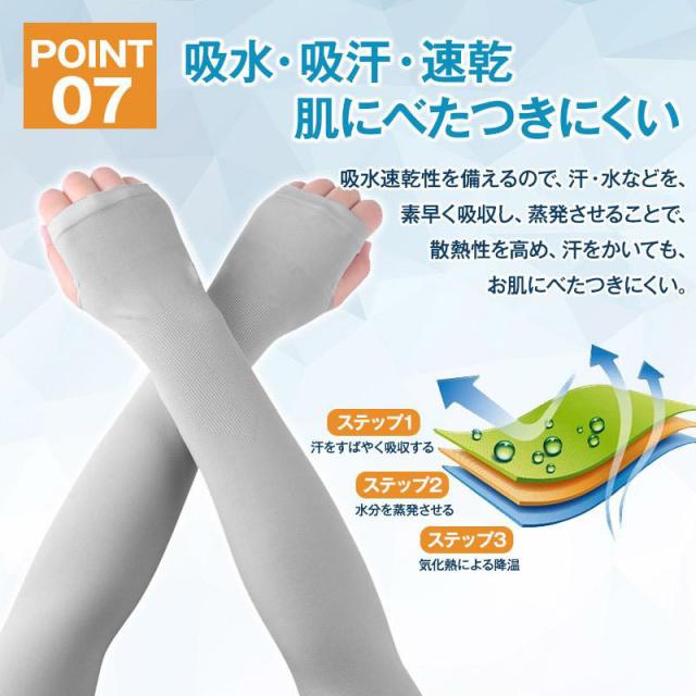 商品特徴:UVカット/吸汗速乾/通気快適/高弾性/腕にフィット/ひんやり