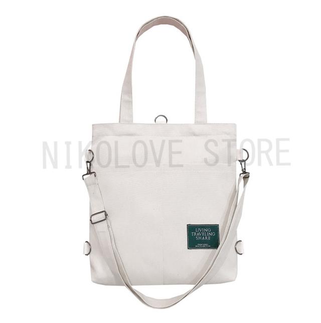 - リーズナブルで、トート、肩掛けにできていいです。リュックにもできますが紐が一本なのでちょっと形が変な感じになりましたが背負えると自転車でも便利です。