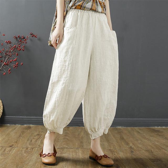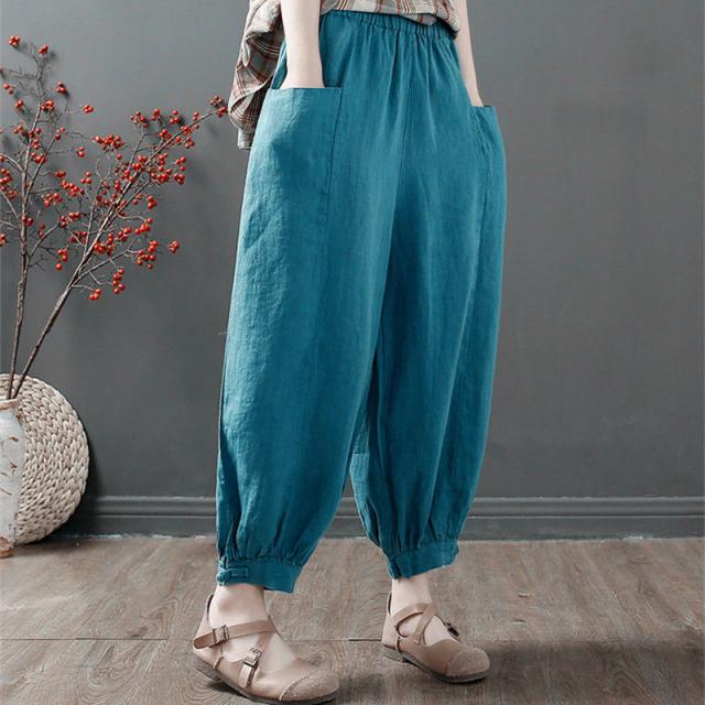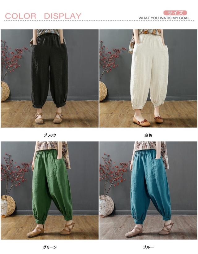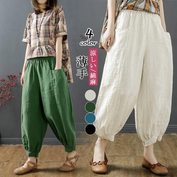 パンツ テーパードパンツ ボトムス レディース 薄手 ゆったり 涼しい 綿 9分丈 送料無料 ウェストゴム カジュアル 通気 通勤