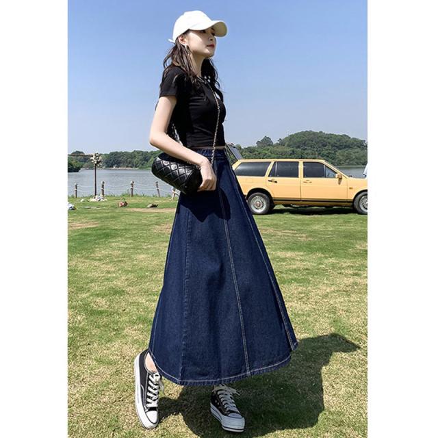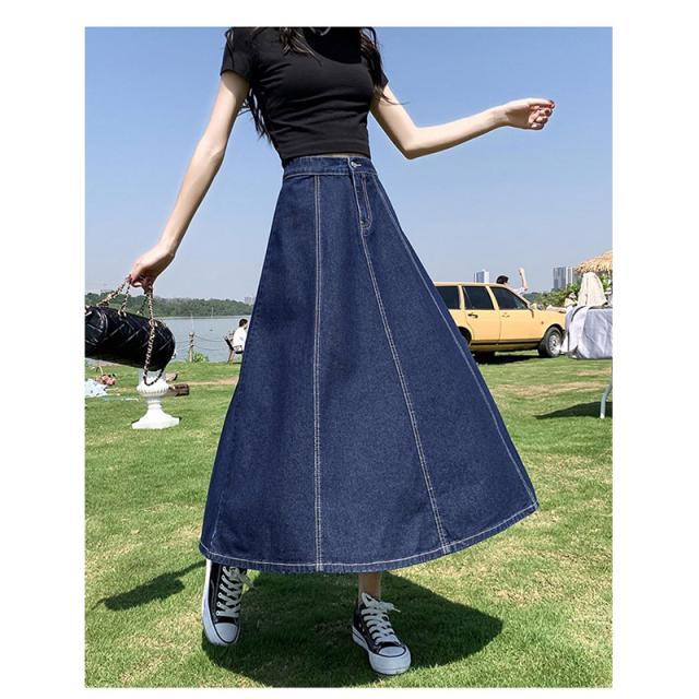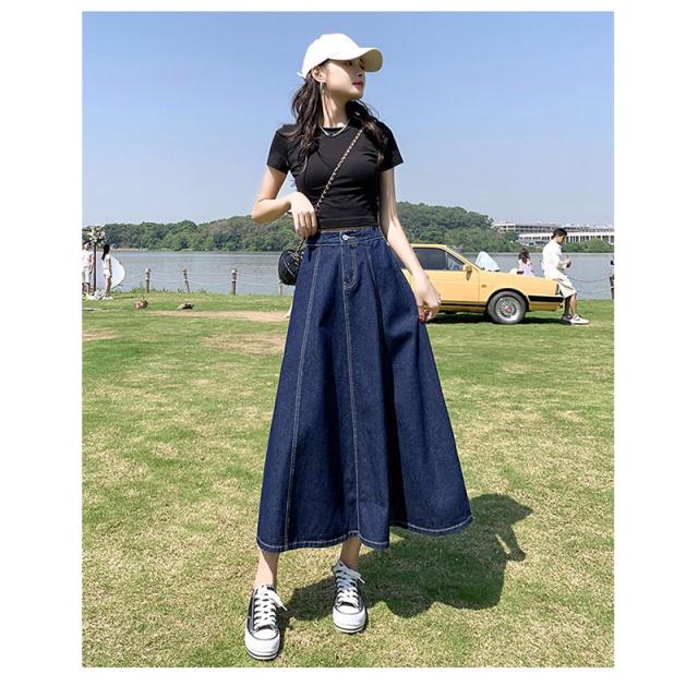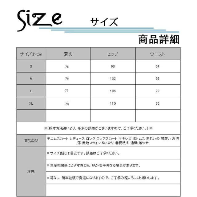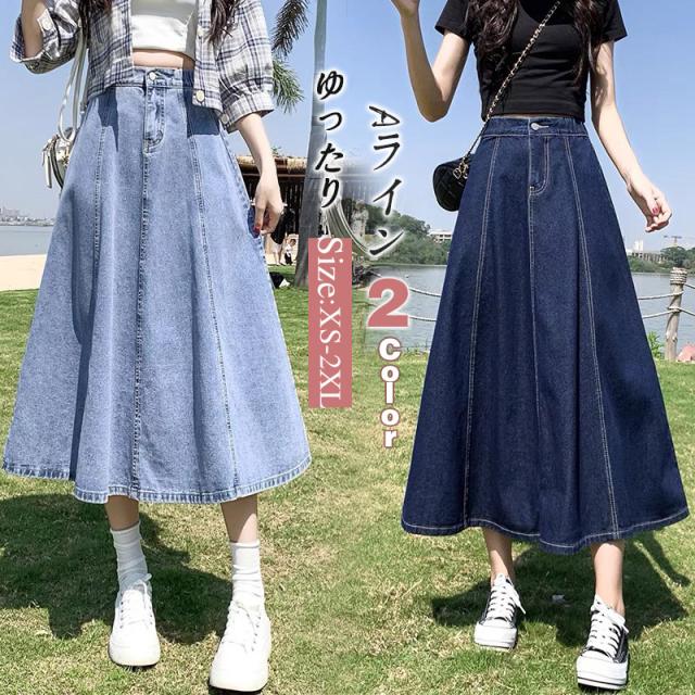デニムスカート レディース ロング フレアスカート マキシ丈 ボトムス きれいめ 可愛い お洒落 無地 Aライン ゆったり 春夏秋冬 通勤 着やせ