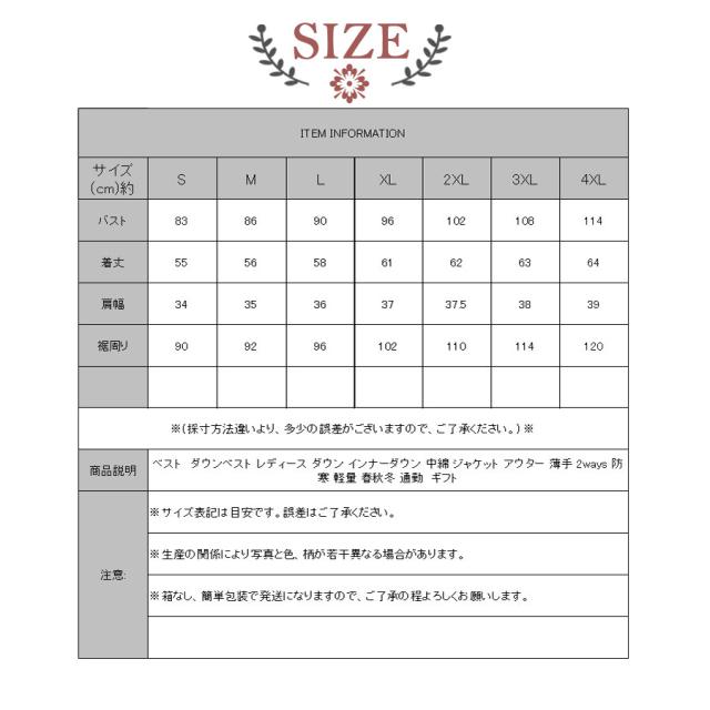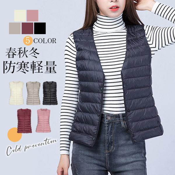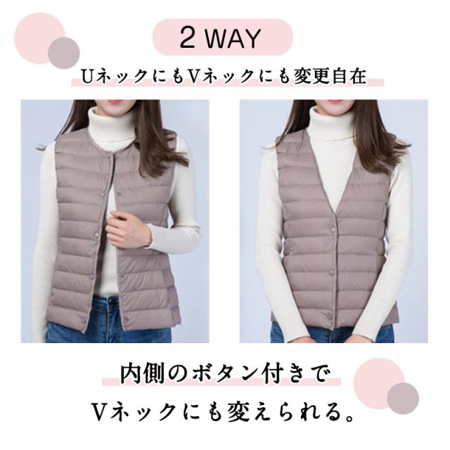 ベスト ダウンベスト レディース ダウン インナーダウン 中綿 ジャケット アウター 薄手 2ways 防寒 軽量 春秋冬 通勤 ギフト