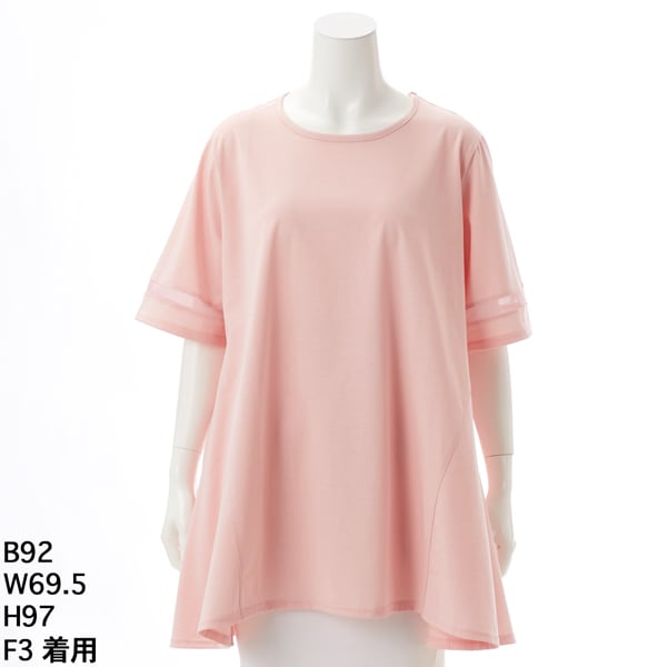 【大きいサイズレディース】袖口シフォン使いAラインシンプルチュニック【日本製】