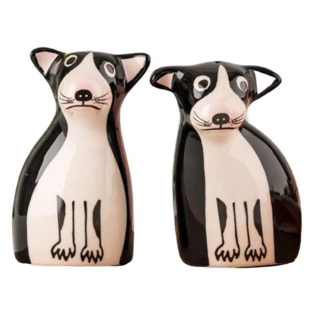 動物モチーフの陶器製ソルト&ペッパーです。複雑な形ながら全面に鮮やかな塗装が施されており、なめらかな質感になっています。