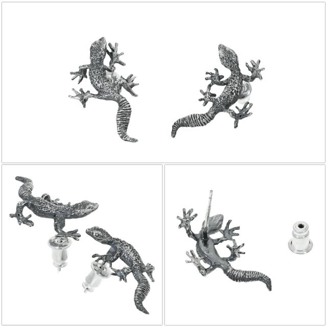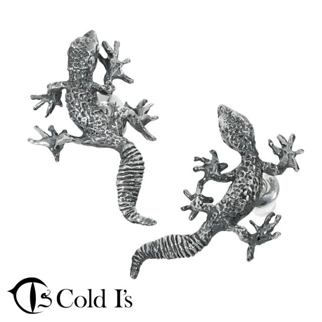 Cold I's レオパードゲッコー ピアス 2P 両耳用 シルバー 925 ヒョウモントカゲモドキ トカゲ ドラゴン 爬虫類 は虫類 リアル 生き物 アニマル