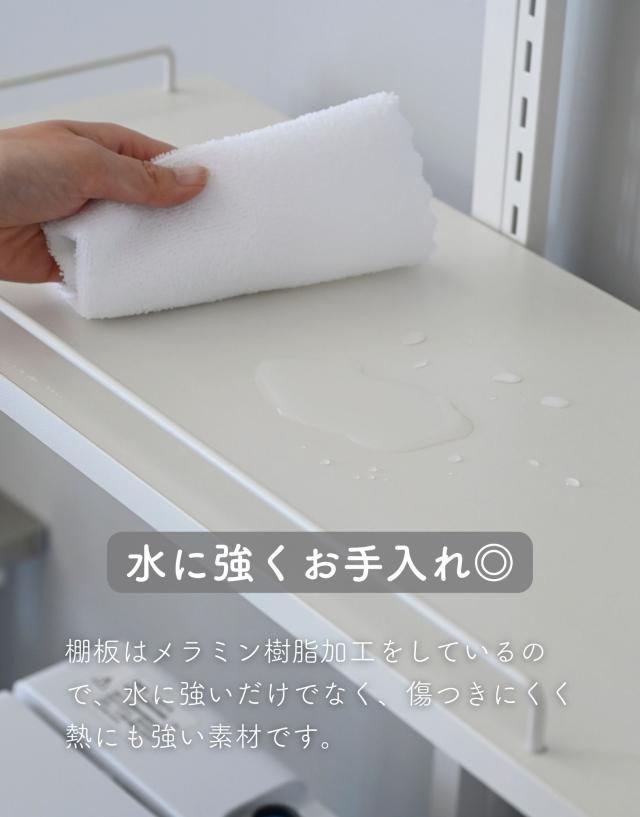 | 材質 | フレーム: スチール(粉体塗装) 棚板: 合成樹脂化粧繊維板(メラミン樹脂) |