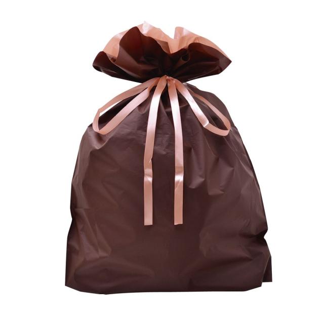 (まとめ買い)ササガワ ギフトバッグ 巾着袋 梨地 リボン付 ブラウン 幅450×高さ560+マチ120mm 1枚入 50-4661 〔×5〕 【北海道・沖縄・離島配送不可】