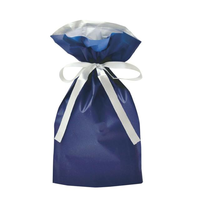 ササガワ ギフトバッグ 巾着袋 梨地 リボン付 ネイビー 幅170×高さ280+マチ80mm 50枚入 50-3360 【北海道・沖縄・離島配送不可】