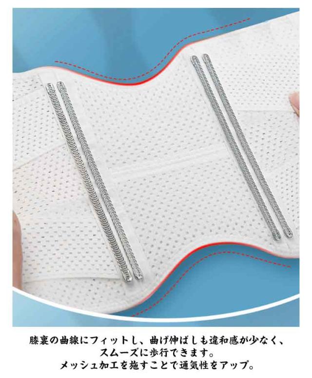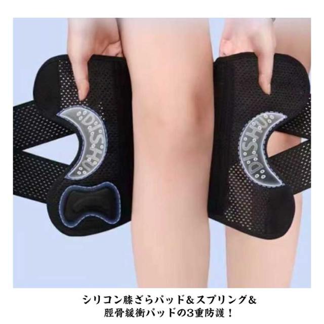 | いつでもどこでも簡単に装着でき、長期間継続して使用できる。痛みをしっかりサポート 膝の負担を軽減し、痛みを和らげてくれます。 シリコン膝ざらパッド&スプリング&脛骨緩衝パッドの3重防護! 膝裏の曲線にフィットし、曲げ伸ばしも違和感が少なく、スムーズに歩行できます。メッシュ加エを施すことで通気性をアップ。 マジックテープで調節可能、膝部分の穴あき設計により足の動きを妨げず、関節の残りの部分と適切に動きを合わせることができます。 | |