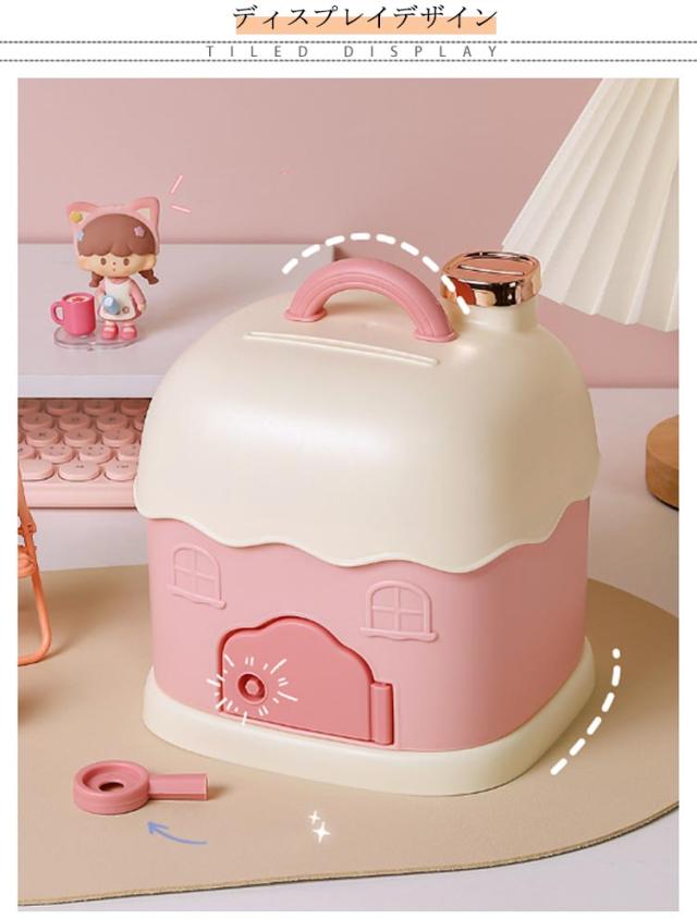 貯金箱 鍵付き 子供 カウンター 金庫 バンク 宝物 マネー ボックス 硬貨 500円 コイン お札 紙幣 収納 可愛い 飾り付き 手提げ金庫 家型 大容量 小銭投入ボックス イベント 景品 雑貨 玩具 マネーバンク 収納 小学生 女子