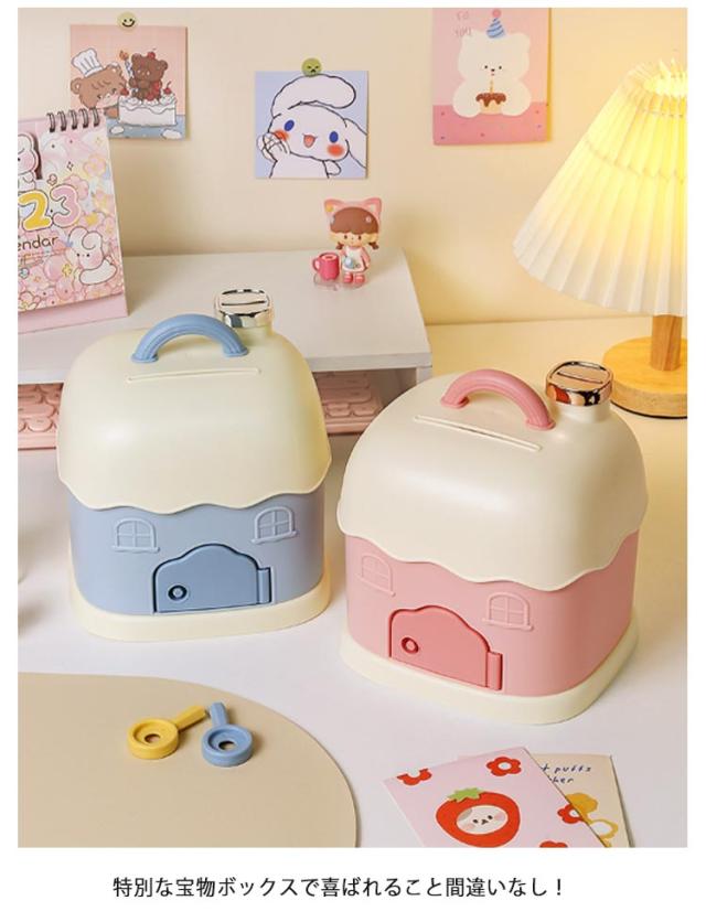 | とっても可愛い小さな家の鍵付き貯金箱です。 小銭とお札どちらも入れることができます。 特に面白いお金を貯めるおもちゃは、子どもの金銭意識を育みます。 鍵付きで取り出し自由!小学生のお子さんへのプレゼントとしておすすめです。 可愛い家型の貯金箱!知育おもちゃとしてもインテリアとしても可愛らしい♪ 特別な宝物ボックスで喜ばれること間違いなし! | |