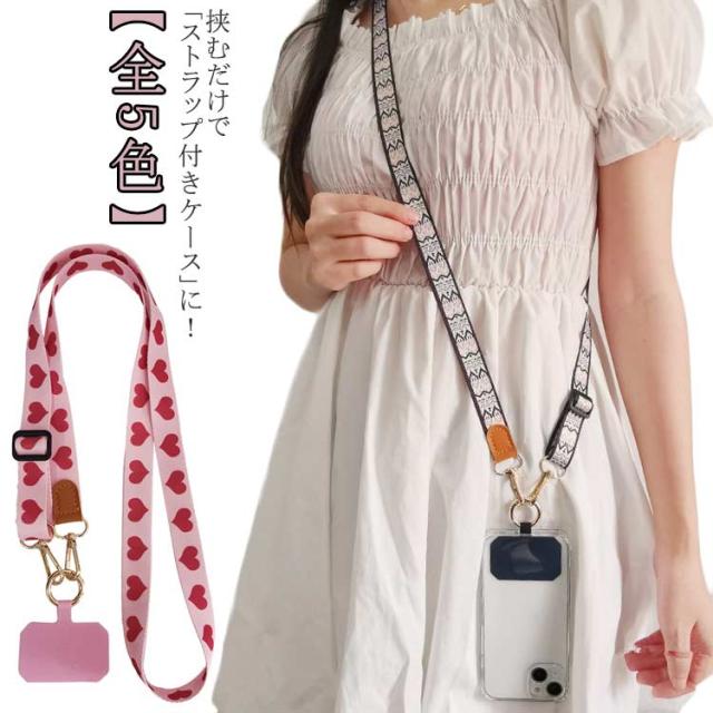 スマホショルダーストラップ 幅広 太め 単品 スマホショルダー ストラップ 斜めがけ ショルダーベルト 挟むだけ 全機種対応 スマートフォン ショルダーバッグ ベルト 首掛け 肩掛け iphone android 可愛い おしゃれ 総柄