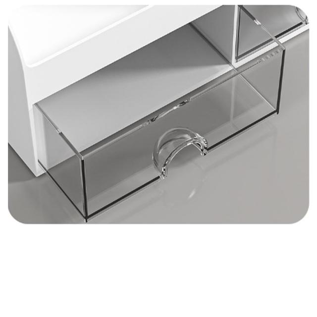 | 机の上で散らかりがちなアイテムをまとめて収納できる卓上オーガナイザーです。 段差があるので各段の収納物が見やすく、使いたいものが取り出しやすくなっています。 仕切られたボックスは、印鑑や小さな付箋などを立てておくのに最適なサイズ感です。 引き出しはスムーズに引き出せて、ストンと閉まります。 小物を収納したまま移動させることができるので、フリーアドレスのデスク収納にも最適です。 汚れても水で洗えるプラスチック製なので、文具だけでなくメイク道具やキッチン用品の収納にもおすすめです。 | |