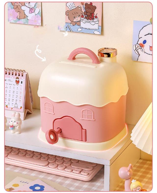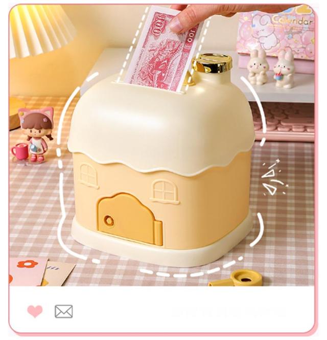 紙幣 硬貨 宝物 貯金箱 玩具 子供 500円 バンク ボックス 飾り付き 景品 コイン 鍵付き 家型 収納 可愛い カウンター 手提げ金庫 お札 大容量 小銭投入ボックス イベント 金庫 雑貨 マネーバンク 貯金箱 収納 小学生