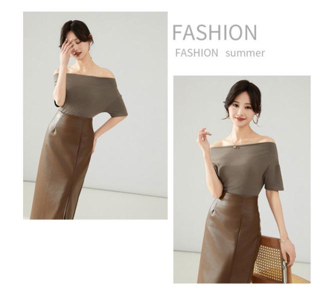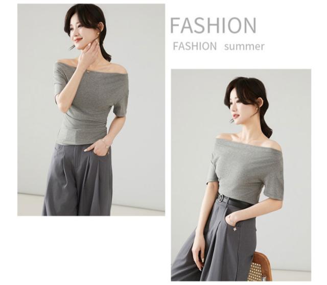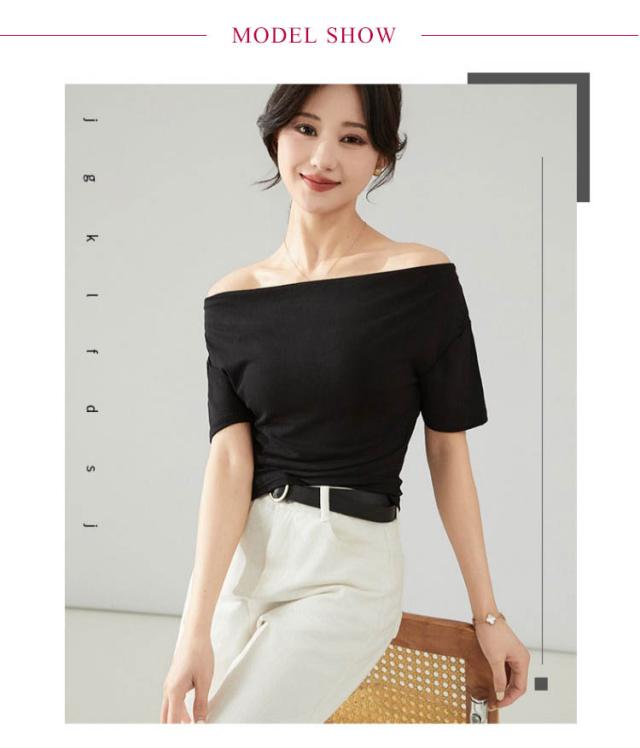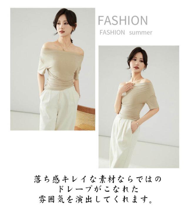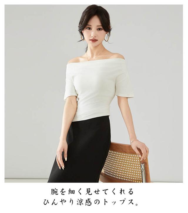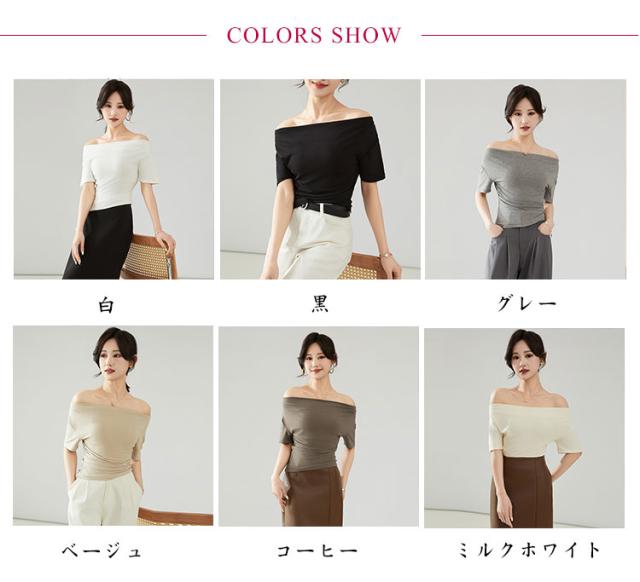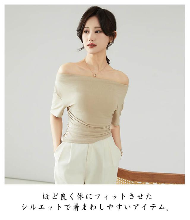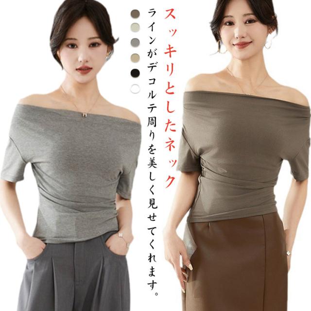 カットソー 肩出し 春夏 半袖 シンプル Tシャツ 半袖 夏 ボートネック インナー レディース オフショルダー tシャツ タイト 細身 着?せ 無地 ストレッチ オフィス 大人 カジュアル