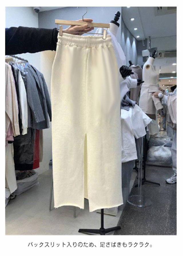 | 裾切りっぱなしで抜け感のあるスウェットスカート。 肌触り柔らかく、伸縮性あり、窮屈感が無い。 バックスリット入りのため、足さばきもラクラク。 タイトなラインでスウェット素材ながら綺麗めにきこなせるオススメの1枚。 | |