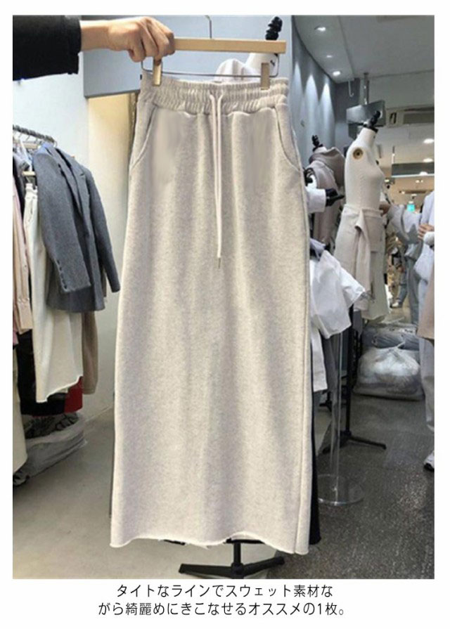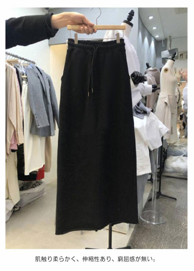 送料無料 スウェットスカート 送料無料 スエット ロングスカート スカート マキシスカート ロング丈 ファッション ポケット付き 韓国 タイト スエットスカート スリットスカート 春スカート 春 夏 ウェストゴム