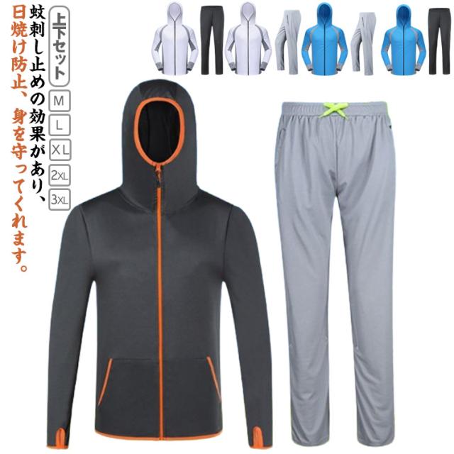 フィッシング 冷感 ウェア セットアップ 上下セット メンズ uv 指穴付き ジギング 虫よけ キャンプ UV対策 速乾 防蚊対策 紫外線対策 パーカー アウトドア 虫よけ 海釣り M L XL 2XL