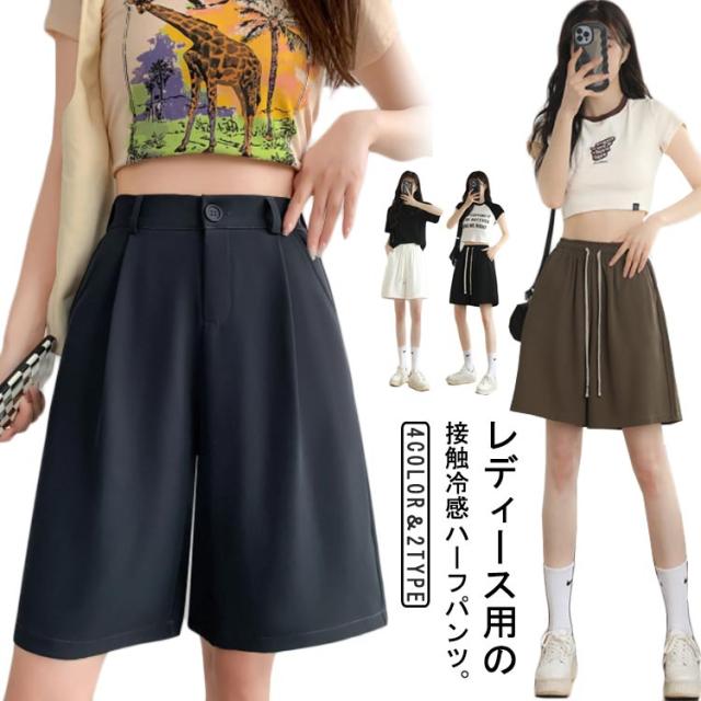 接触冷感 5分丈パンツ ワイドショートパンツ ワイドパンツ 薄手 夏用 半ズボン ハーフパンツ ハイウエスト キュロット 無地 ポケット 接触冷感 短パン ゆったり 大きいサイズ ウエストゴム スーツパンツ 着痩せ ショーパン 春夏 韓国ファッション