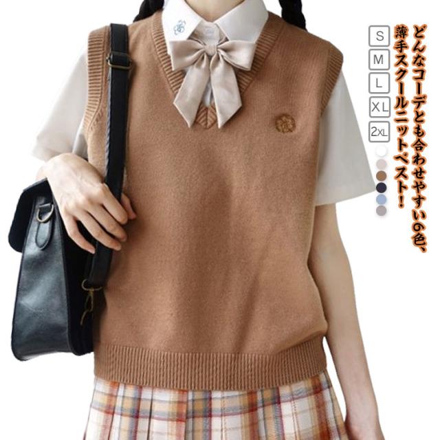女子 薄手 夏 ノースリーブ ニットベスト スクールセーター 中学生 XL シンプル レディース 通学 ベスト 高校生 Vネック 女子高生 学生服 スクールベスト スクール JK ベスト コスプレ かわいい 制服ベスト 夏用 夏服 S M L 春用