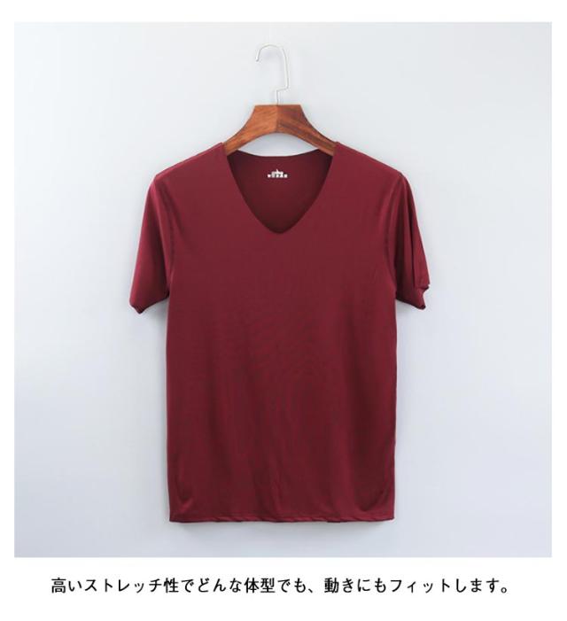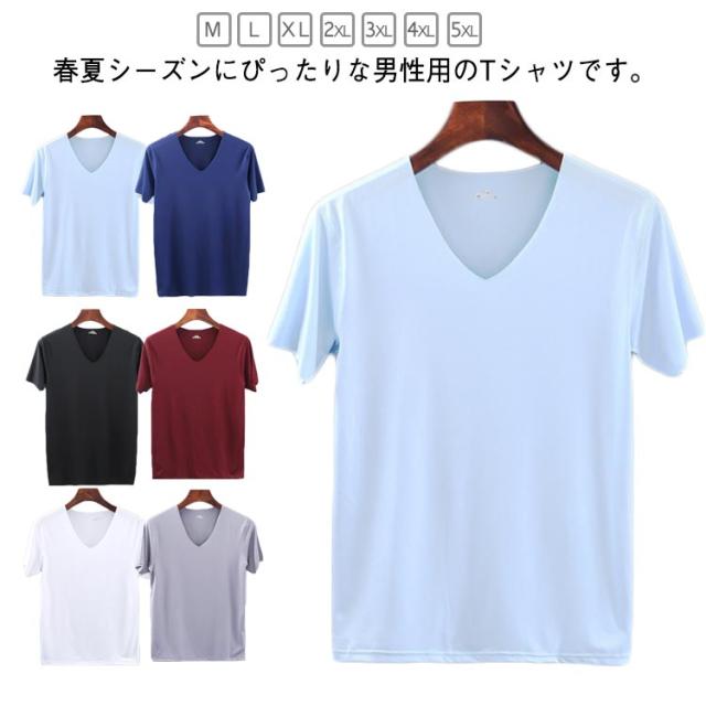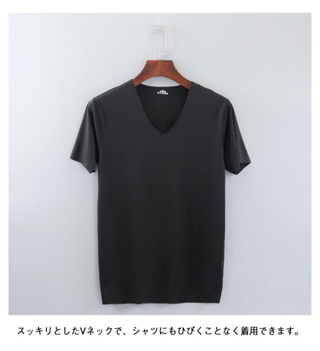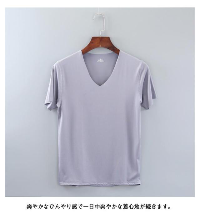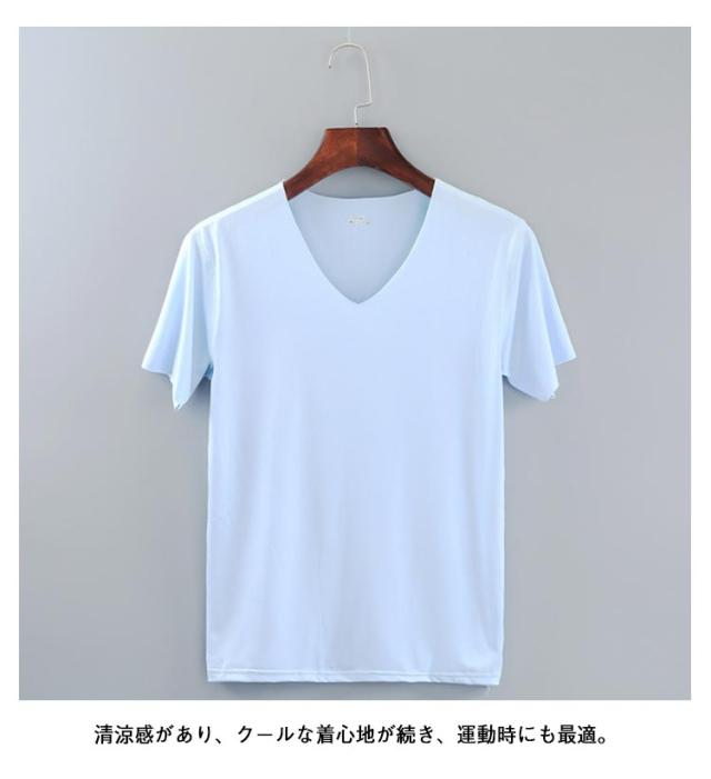 涼しい Vネック 半袖 春夏 接触冷感 吸汗速乾 肌着 クール シームレス ジム ジョギング ランニング スポーツウェア ゴルフウェア インナー 半袖 メンズ 大きいサイズ 部屋着 無地 ルームウェア