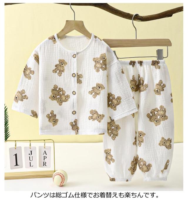 キッズ ガーゼパジャマ 7分袖 110cm 送料無料 かぶりパジャマ パジャマ 綿 男の子 半袖パジャマ 80cm-150cm 前開きパジャマ 女の子 前開き パジャマ半袖 パジャマ女の子 パジャマ男の子 夏パジャマ 80cm 90cm 100cm キッズ 120cm 130cm 140cm