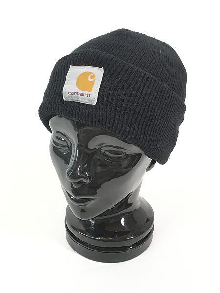 雑貨 古着 USA製 Carhartt ロゴ パッチ ニット ワッチ キャップ ビーニー 黒 帽子 古着