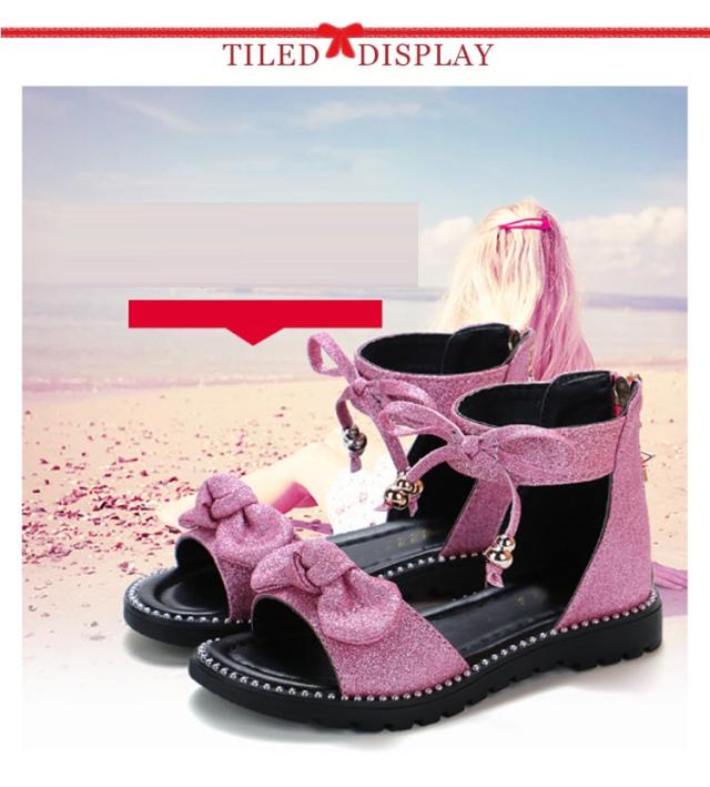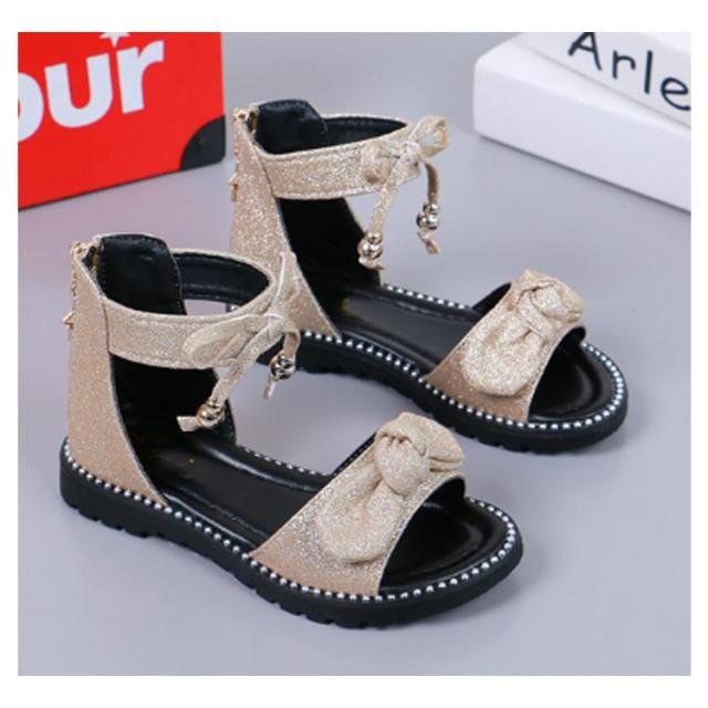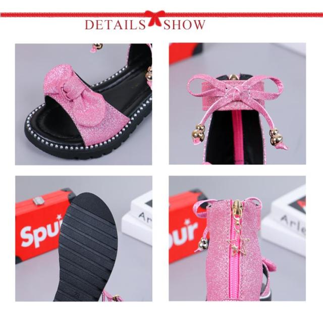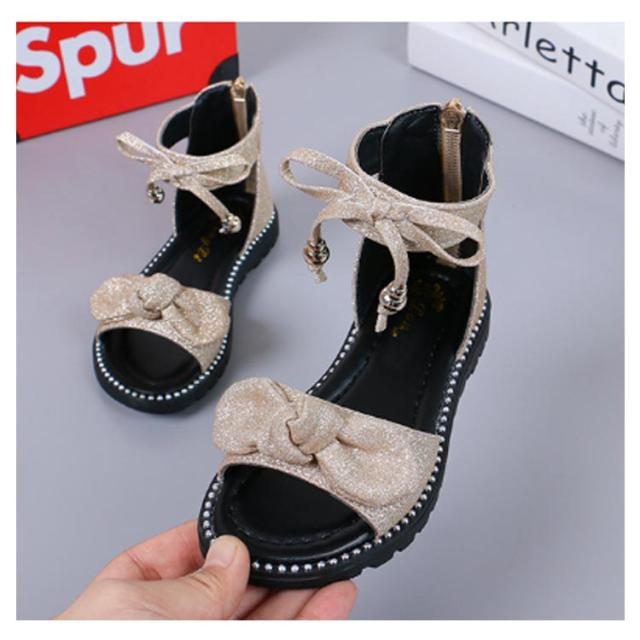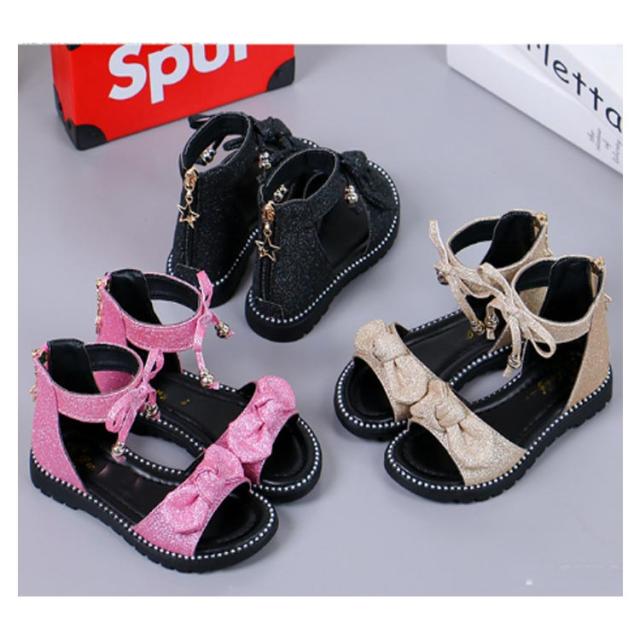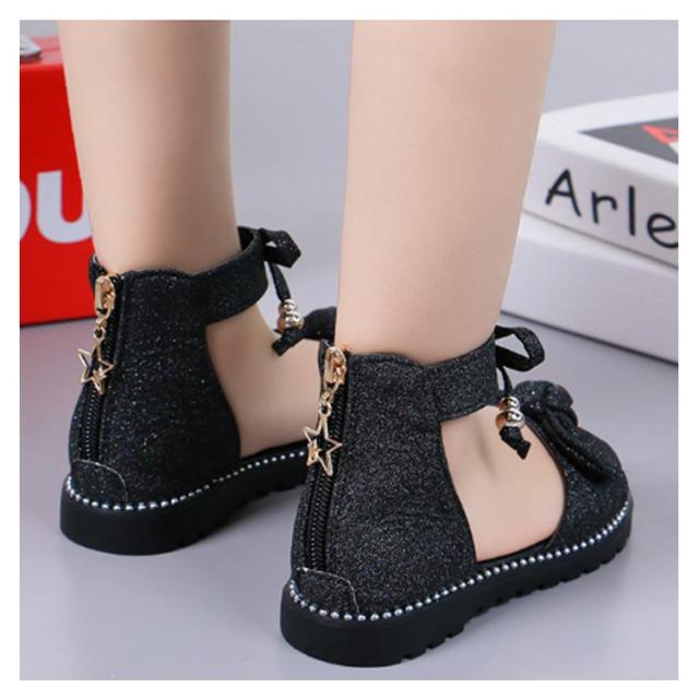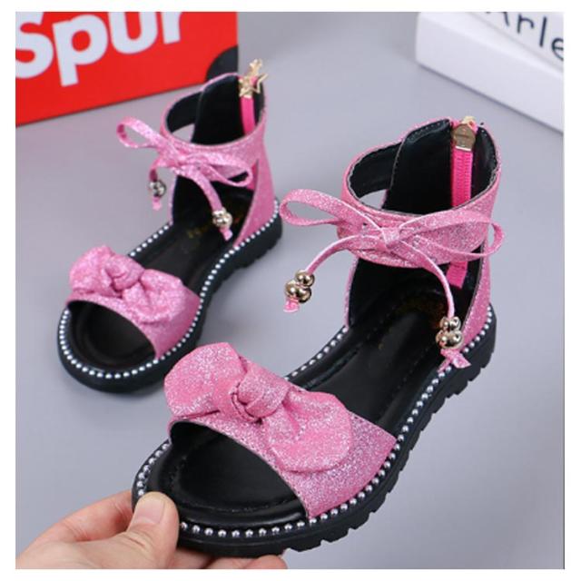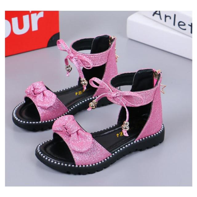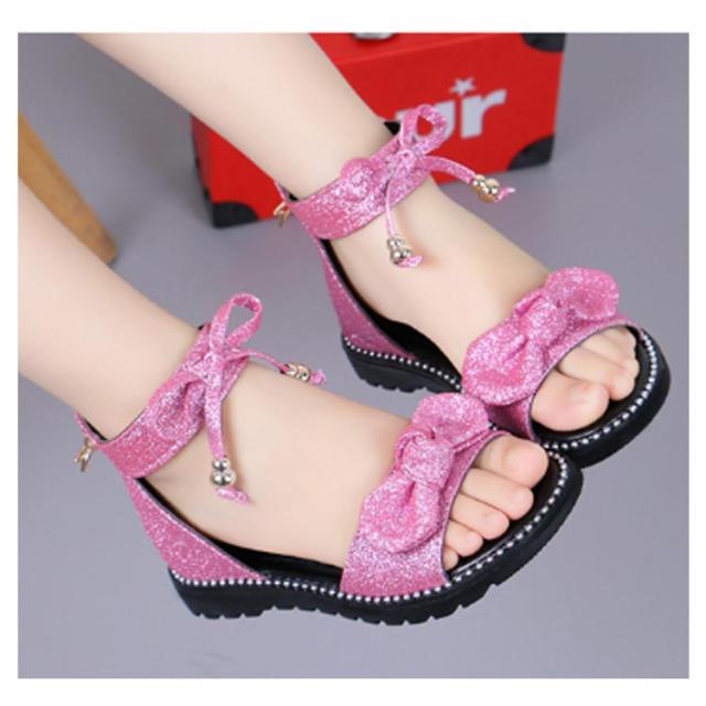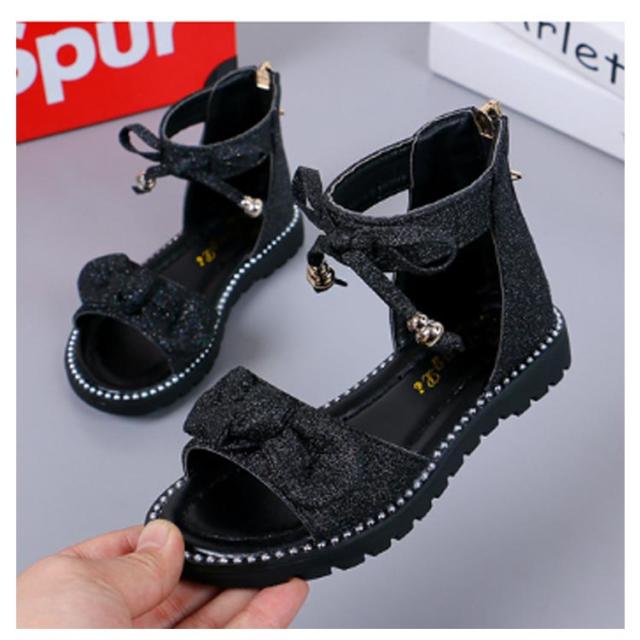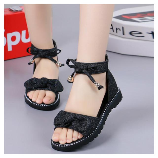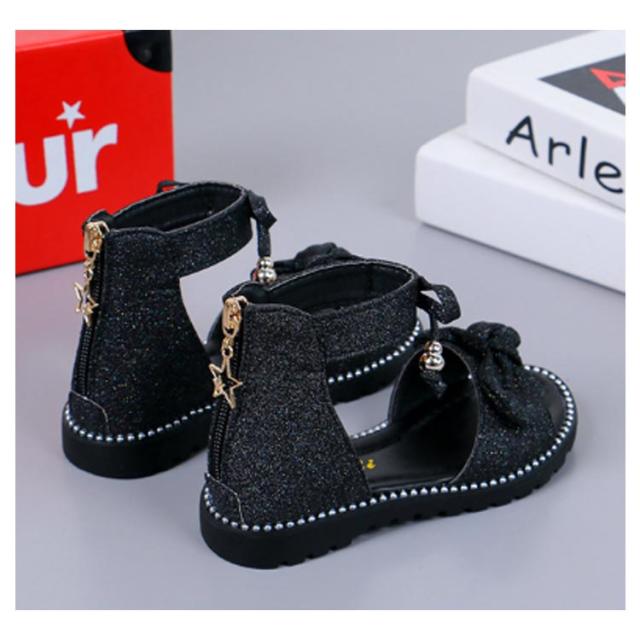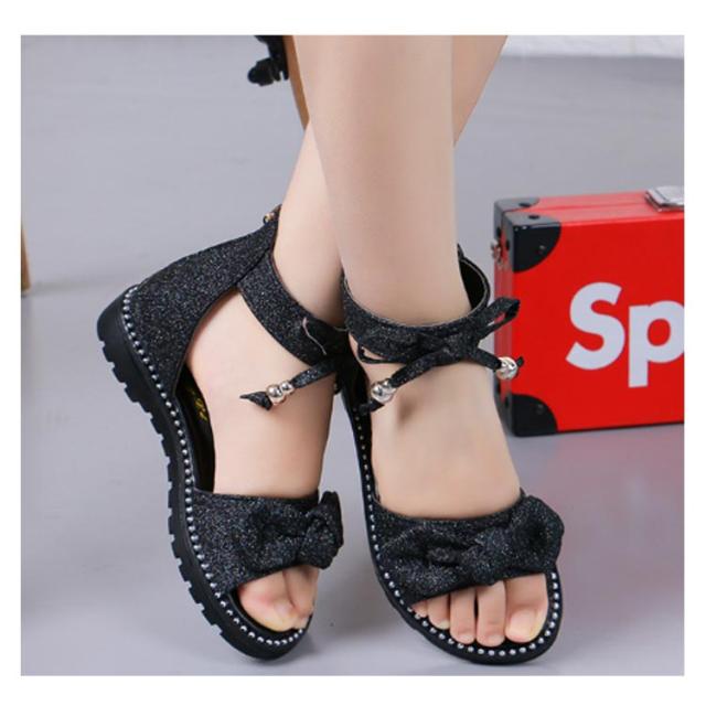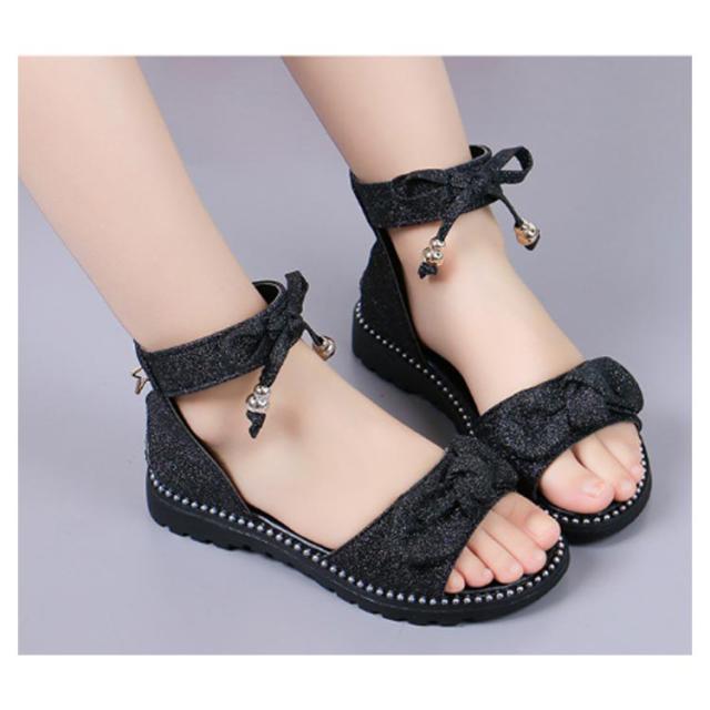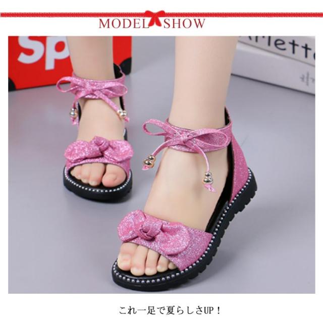 姫系 サンダル 子供靴 リボン アンクルストラップ キッズ 夏 キラキラ ジュニア 子供サンダル 可愛い 子供用 子供靴 女児 子ども かわいい おしゃれ 可愛い 卒園式/入学式/パーティ ブラック ピンク