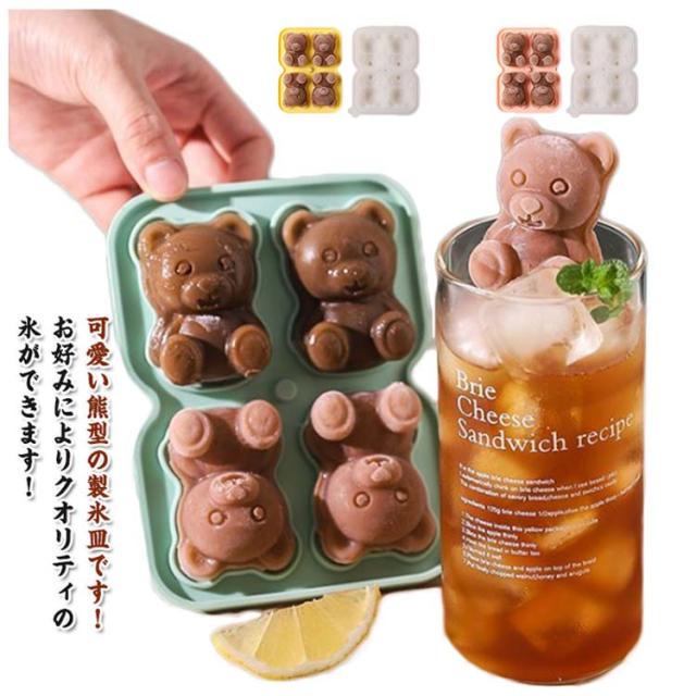 製氷皿 製氷皿 4個取り 動物 製氷器 アイス かわいい シリコンモールド くま くま かわいい 氷 熊 くま 製氷機 可愛い 3D 製氷皿 DIY アイスモールド アイスキューブ型 お茶やお酒用氷が作れる おしゃれ インスタ映え 人気