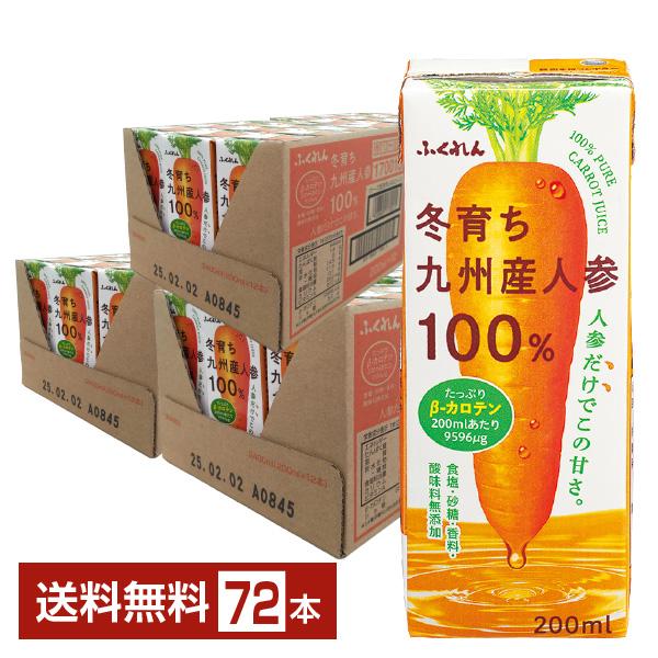 ふくれん 冬育ち九州産人参100%ジュース 200ml 紙パック 24本×3ケース(72本) 送料無料