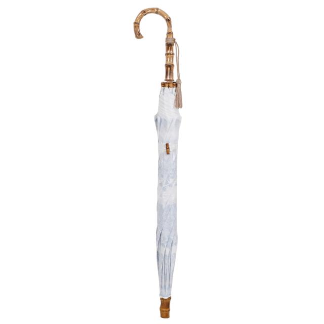 軽くて涼しい、さわやかな白い傘。非常に軽くて軽い生地に施された特殊なコーティングは、デリケート肌の大敵である紫外線を効率良くカット。また、強い日差しから降り注ぐ不快な熱を弾きかえし、傘下に熱がこもりにくいので熱中症対策としても。