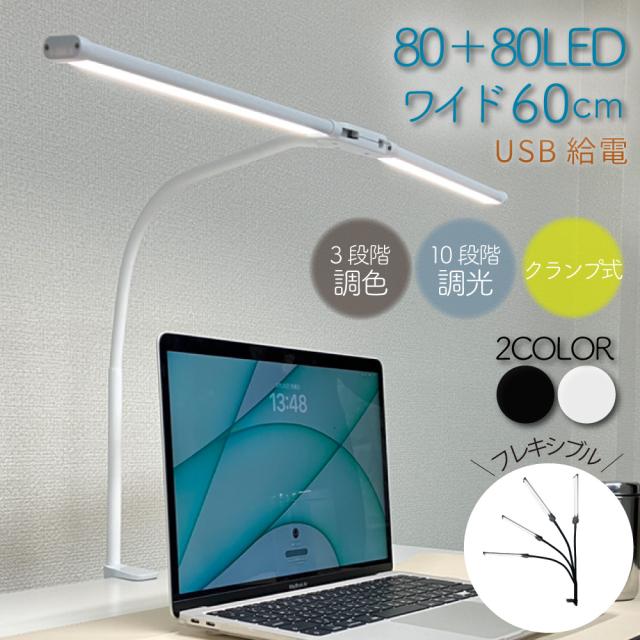デスクライト LED ライト 電気スタンド 学習机 おしゃれ 卓上ライト 卓上 デスク クランプ スタンド Ledデスクライト テーブルライト 読書灯 机 照明 クランプ式 クランプライト LEDライト スタンドライト デスクスタンド 寝室 明るい モニターライト 60cm ワイド 白 usb