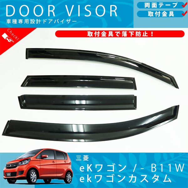 三菱 ekワゴン ekカスタム B11W ドアバイザー サイドバイザー / 取付金具 付
