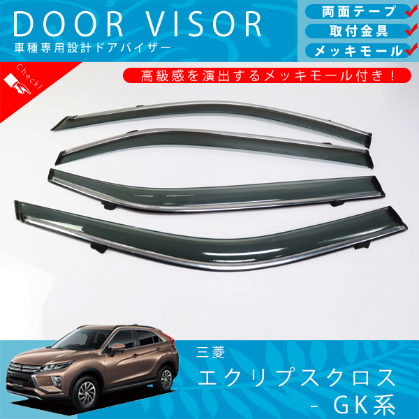 三菱 エクリプスクロス GK 系 ドアバイザー サイドバイザー / 取付金具 ・ メッキモール 付