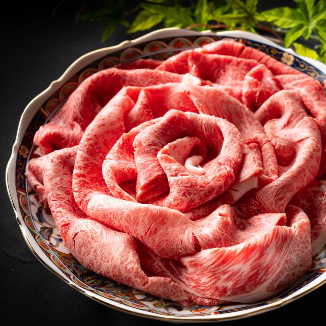 松阪牛 A5のウデミスジを贅沢に すき焼き しゃぶしゃぶ用にカットいたしました。