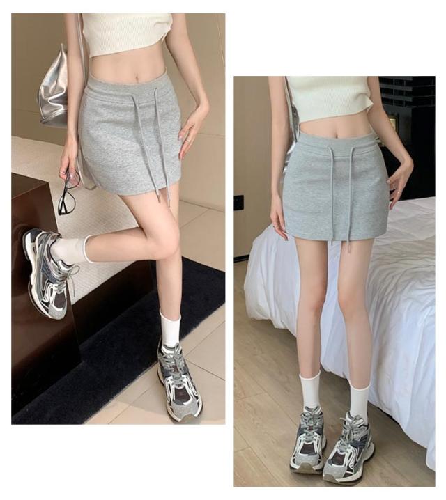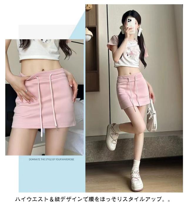 | 全4色、シンプルなデザインのスウェットスカート ハイウエスト&紐デザインで腰をほっそりスタイルアップ。。 丈は短いけれどショートパンツの裏地付きなので安心して履けるデザインです。スタイルアップを叶えます。 スポーツウェアからデイリーカジュアルな場所まで活躍してくれるスカートです。 | |